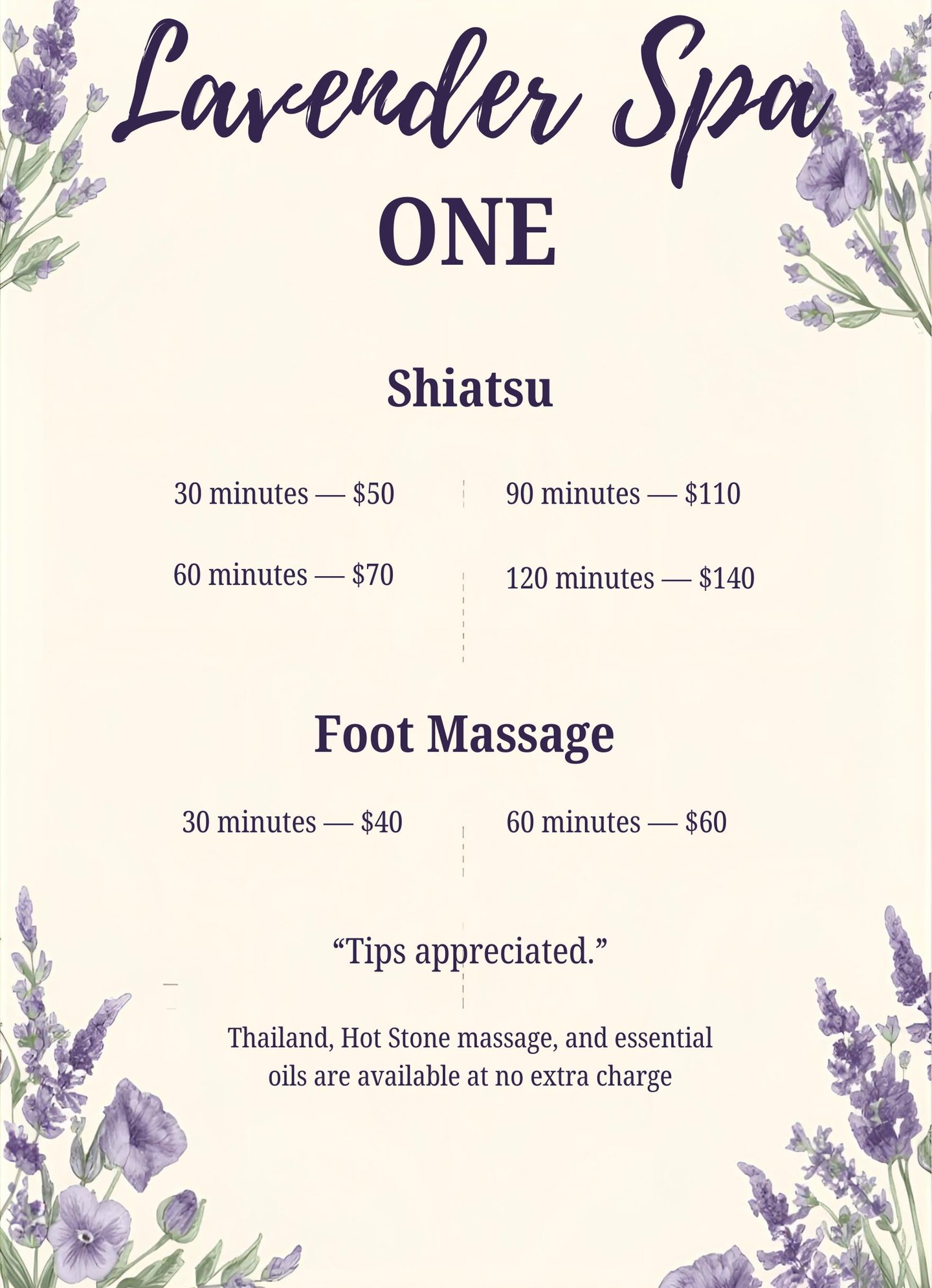 Lavender was born from a simple idea: when you’re in pain or stressed, you shouldn’t have to gamble on the quality of a massage. We created a studio where the basics are never “extras” clean linens, licensed therapists, clear pricing, and care that’s actually tailored to your body that day.